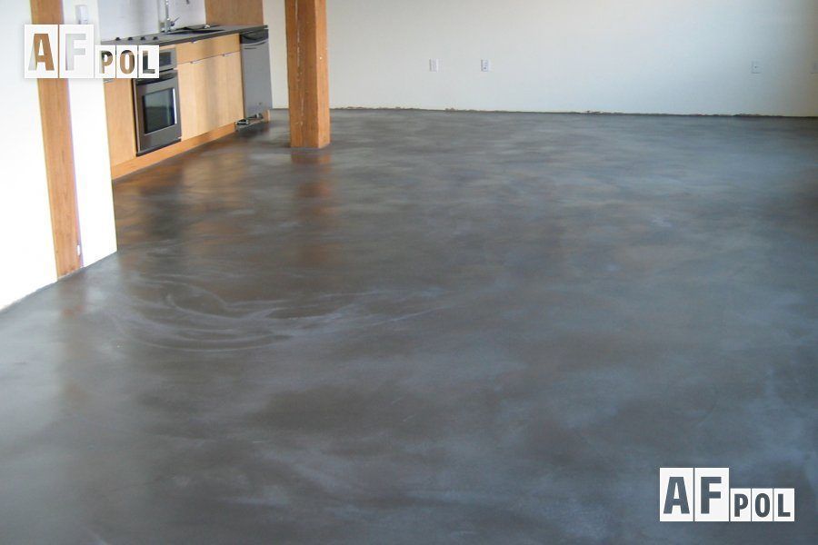 Обратите внимание! В отличие от полиуретановых составов потребуется время на обработку поверхности. Для глянцевого или зеркального эффекта применяется шлифовка и полировка. Затирка материала приводит к созданию матовой текстуры как на промышленных предприятиях и складах. Декоративный пол под бетон нужно обрабатывать с осторожностью, так как он распределяется тонким слоем.