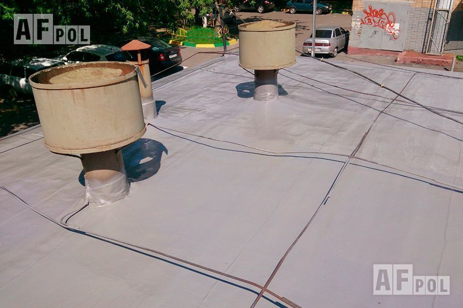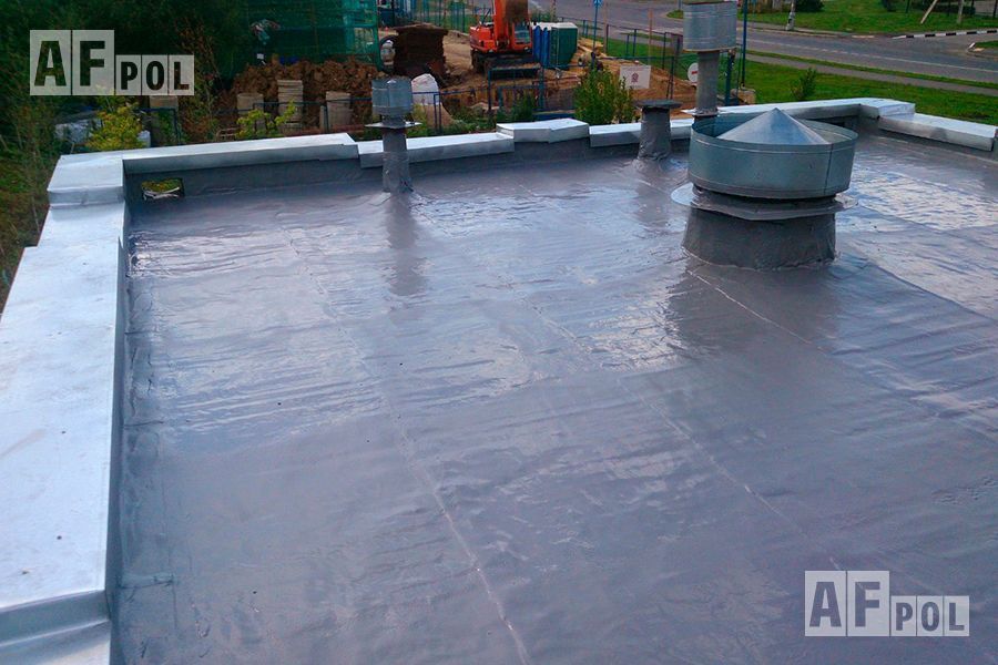 Напыляемая гидроизоляция полимочевиной или жидкой резиной предусматривает формирование цельной мембраны без швов и стыков толщиной около 2-х мм. Нередко её используют при обустройстве кровли, где она способна стать надёжной защитой не только снаружи, но и в подкровельном пространстве. Конечно же, она идеально подходит и для пола — своей монолитностью, исключая возможность протечек.