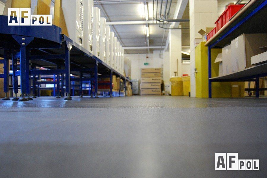 - Многоуровневые стеллажи, загружённые товарами, также оказывают на пол целевую нагрузку, поэтому важно, чтобы он располагал достаточным запасом прочности для того, чтобы выдерживать её. Её измеряют в килограммах на один квадратный сантиметр. Так, к примеру 1 кв. м покрытия от «AFpol» выдерживает нагрузку в 400 кг;
